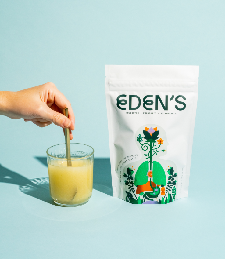 Eden's synbiotic supplement is a 3-in-1 superblend of prebiotics, probiotics, and polyphenols, formulated to give your good gut microbes everything they need to thrive.